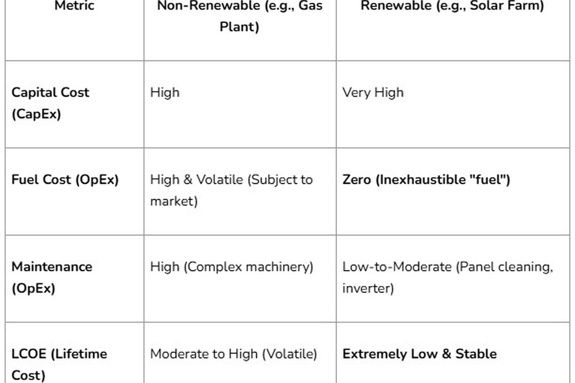 This is the upfront cost to build and install the energy-generating asset. For fossil fuels, this is the cost of the turbine and power plant. For renewables, this is the cost of the solar panels, wind turbines, or battery storage systems. Historically, the high CapEx of renewables has been the primary barrier to adoption.