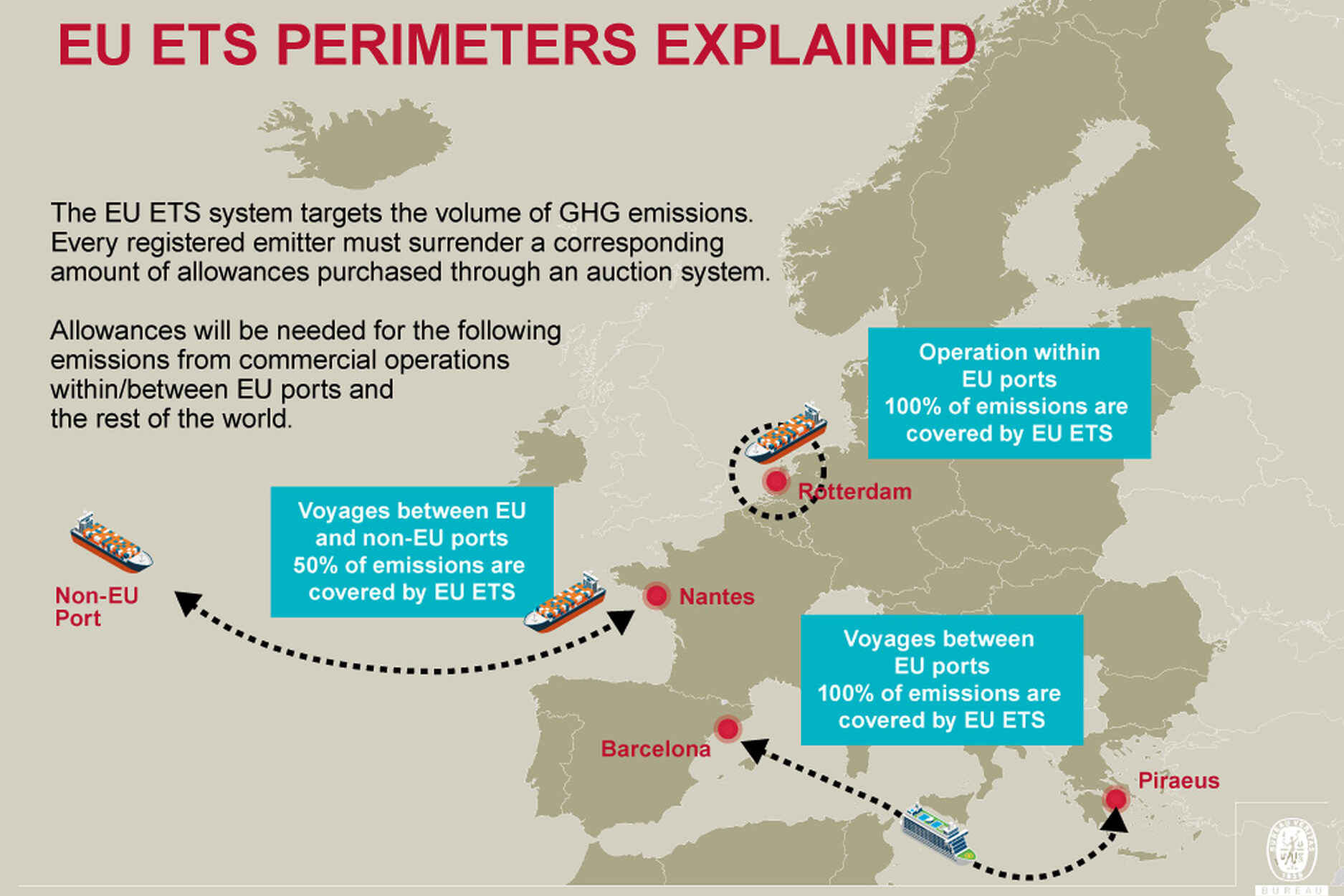 In Spring 2023, there was a major change to the European Union Emissions Trading System (EU ETS), when the maritime sector was incorporated into it. Unlike aviation, maritime was, up to that point, exempted from paying for its emissions. Why now? Due to the EU’s 2050 net-zero target but also due to the fact that maritime is responsible for 3% to 4% of the EU’s total CO2 emissions. Simply put, the sector responsible for around 75% of EU external trade volumes and 31% of EU internal trade volumes, making it an essential transportation system[9], must have a price tag on its emissions, as the fuels being used are almost entirely fossil fuel-based. This should further assist the maritime in its decarbonization pathways.
